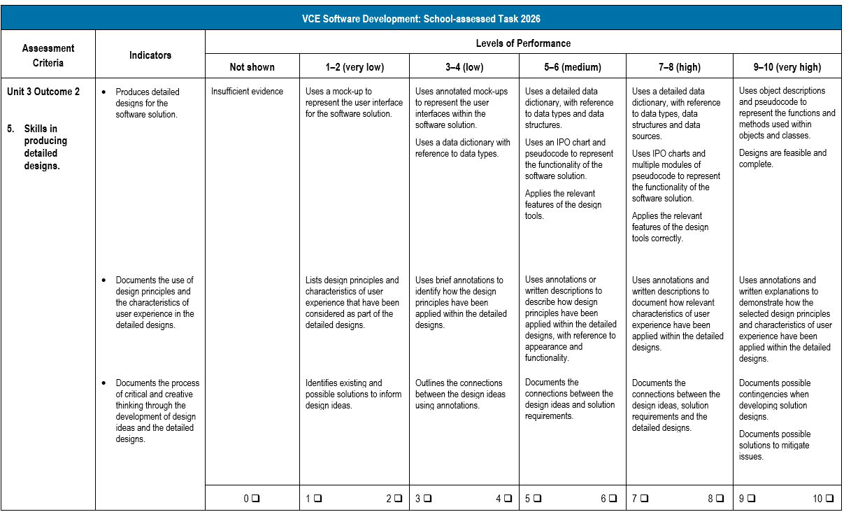 Criterion 5 focuses on skills in producing detailed designs.